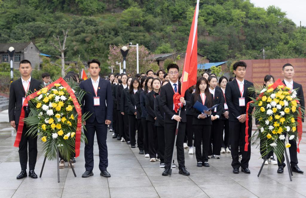 烈士陵园林木葱茏,松柏凝翠;纪念碑前气氛肃穆,全体齐唱国歌。9点30分,在低声回荡的乐声中,4名员工代表向革命烈士敬献花圈,全体师生在庄严肃穆的纪念碑前默哀三分钟。默哀毕,同学们看向面前的革命烈士纪念碑,上面镌刻着各个历史时期达州籍烈士4012人,每个人都有一段属于自己的英雄事迹,革命先辈们的英勇事迹,深深地震撼了现场所有的师生。