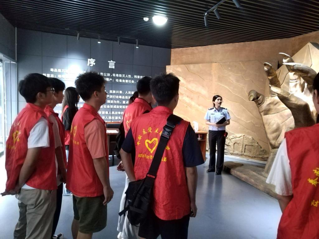 活动现场,禁毒基地的讲解员,带领志愿者们一一观看展示墙。从国家禁毒历史开始讲述,介绍了毒品的概念种类,以及对人体器官的各类损害。列举种种痛心事例,用实例强调毒品对个人、社会、国家的重大危害。教育同学们在生活中应提高自我防范意识,拒绝和远离毒品,并鼓励志愿者们将了解到的的毒品知识向身边的人宣传,当一名禁毒宣传员。
