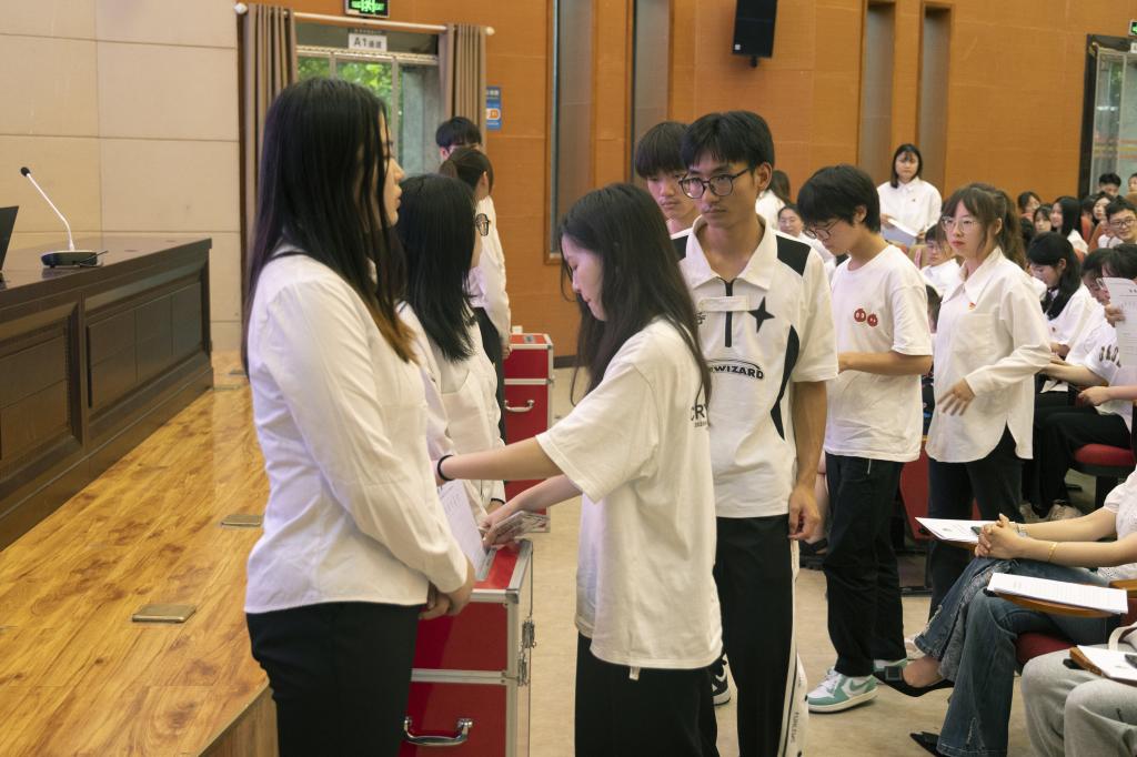 大会在庄严的国歌声中拉开序幕。主持人宣读了本次会议的换届须知和主席团、各部门正职干部候选人名单。在竞聘过程中,每位竞选的同学都进行了个人演讲,表达了自己对未来工作的信心,讲述了自己的未来展望。他们许下庄严承诺,会以更加积极、专业和高效的方式来推动团总支员工会的各项工作,并且会不断提高自己的组织和领导能力,为广大同学创造更加美好的校园生活。演讲结束后,由陈家雪老师主持和监督投票,秉持着公平、公正的原则,让各参会代表都能够放心地进行无记名投票。在投票结束后,员工会和团总支的监票人对选票进行清点,确保选票数量与实到代表的数量相符,从而保证整个投票过程的可靠性和公正性。最终,民主选举产生了一批高素质的杰出干部。