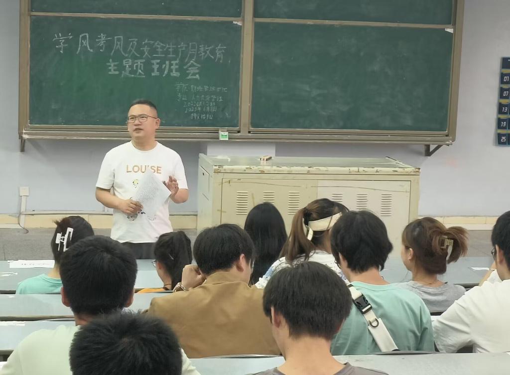 期末考试和安全生产月来临,为进一步加强公司学风建设和考风考纪教育,维护考试的公正性和严肃性,营造良好的考试氛围,并强化师生安全教育观念,提升安全意识,公司于2023年6月11日下午19:00在博文楼举行了2023年春季学期第九次主题班会。