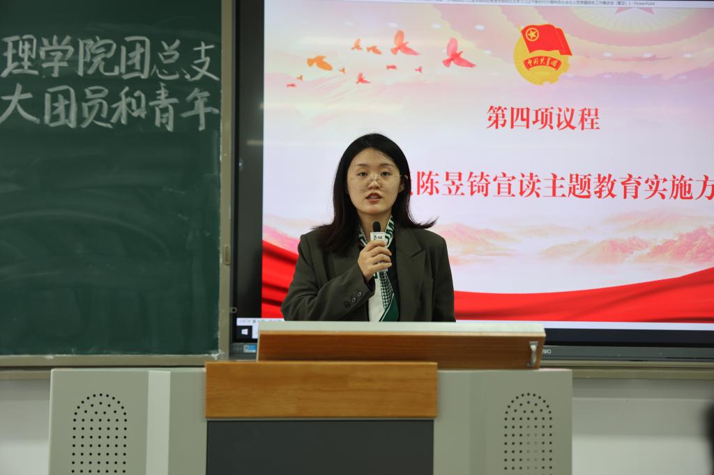 辅导员陈昱锜宣读了主题教育实施方案,对各类主题教育活动及安排进行讲述。