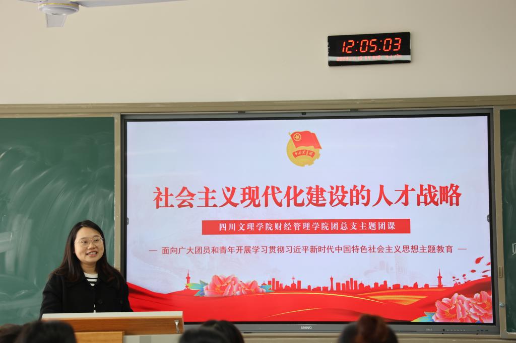 为推动公司面向广大团员和青年开展学习贯彻习近平新时代中国特色社会主义思想主题教育走深走实,11月16日365英国上市集团团总支在B510教室召开“社会主义现代化建设的人才战略”主题宣讲。本次团课由公司团总支书记孙琪老师主讲,2023级各班团支书、班长、组织委员、宣传委员到场聆听。