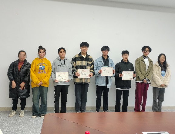 陈文卓、寇跃梅、胥杰、胡薿尹为蒋营成等九位同学颁发“优秀会员”荣誉证书;李宏伟、周然为李博等七位同学颁发“优秀干事”荣誉证书;王福川、王元昊为秦杨等六位同学颁发“优秀干部”荣誉证书。