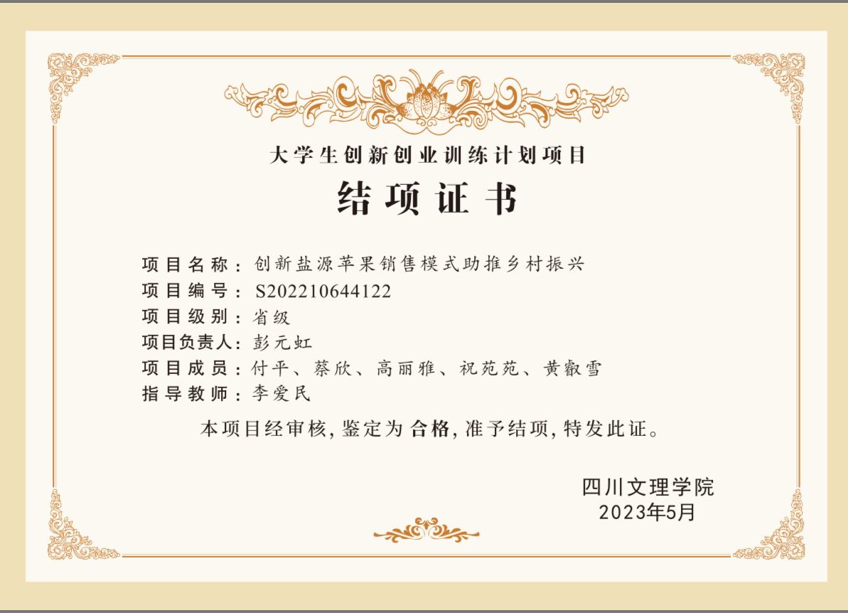 作为新起点科研社团负责人,在参与员工科研的过程中,她亦然做到了以身作则、发光发亮,她曾主持一项校级老员工科研项目《城市公共空间适老化改造调查研究——以达州市为例》,并优秀结项,成果论文已以第一作者身份发表在《OALib Journal》期刊;主持一项省级老员工创新创业训练计划《创新盐源苹果销售模式助推乡村振兴》,已结项,成果论文已以第一作者身份发表在《可持续发展》期刊。参与一项国家级老员工创新创业训练计划立项,参与一项校级老员工科研项目并优秀结项。软著一项《老年餐食——养老服务餐饮综合平台》。参与诚信文化教育研究项目《高校课程建设与诚信文化建设一体化研究——以365英国上市集团为例》,已结项;参与2020-2022校级公司产品改革研究项目《双一流建设背景下高校教育管理人才队伍建设研究》,已结题。