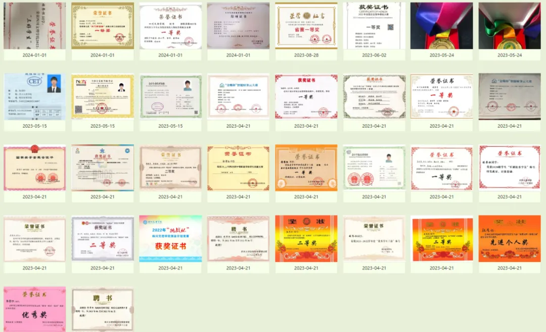 除了学科竞赛外还曾获“国家奖学金”、校“三好员工”、“军训优秀学员”、“2021年春季富顺抗疫优秀老员工志愿者”、院“优秀员工干部”、“寝室文化节先进个人奖”、“修身·成才·报国”演讲比赛优秀奖等荣誉。