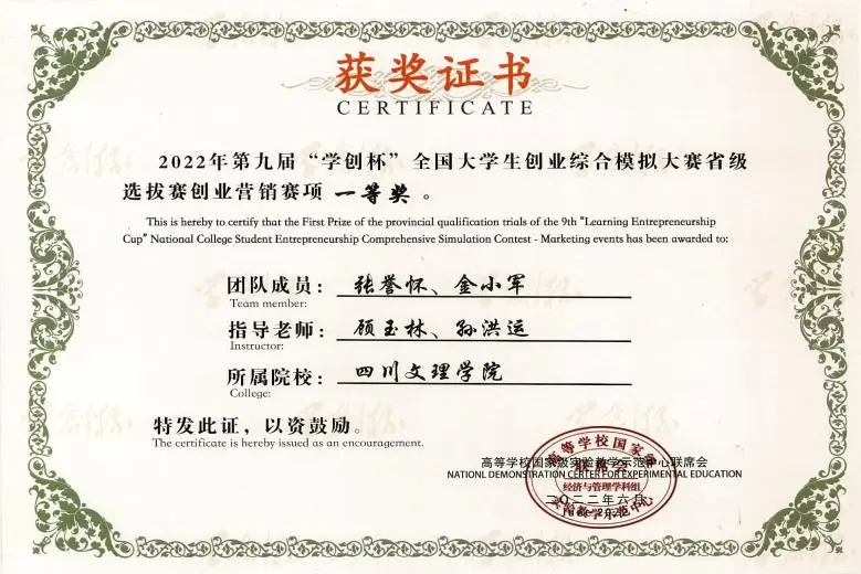 获得了这样的成绩也让他后面的竞赛得到极大的信心。然后他大二下期开始爱上了各类竞赛,首先是“学创杯”,经过几个月日复一日的训练后我获得了省级一等奖的好成绩。