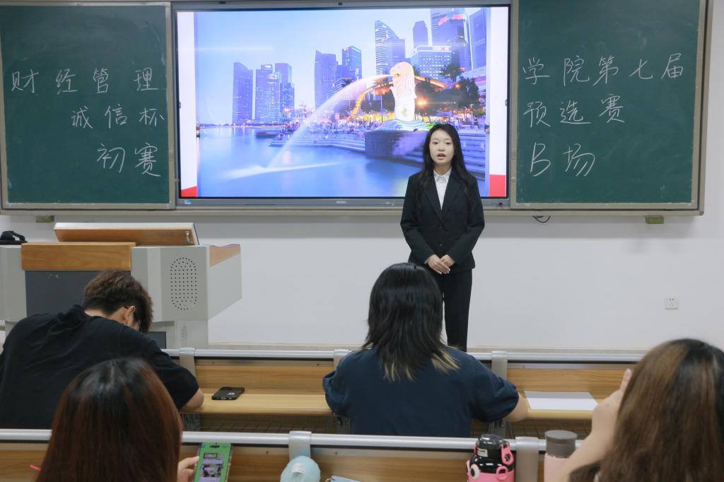 各参赛选手结合比赛的主题,对“诚信文化”进行了多角度的精彩阐述。其中,有的选手语言幽默诙谐,活跃了现场气氛;还有的选手旁征博引,例举了许多名人事例……可见选手们为此次比赛进行了充足的准备。