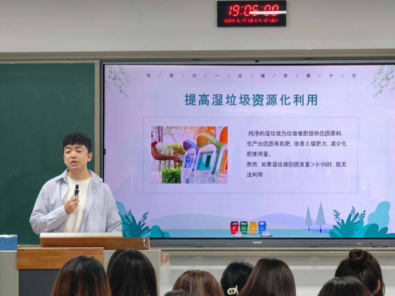 垃圾分类,低碳生活我先行。垃圾分类,是每一位公民应尽的责任,更是我们创建美好校园环境的必要举措。在班会上,辅导员向同学们详细讲解了垃圾分类的重要性和具体操作方法,鼓励大家积极参与,从点滴小事做起,共同营造干净整洁的校园环境。