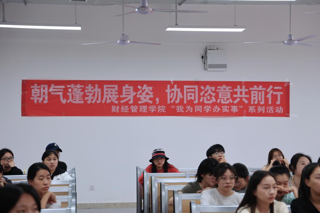 胡双师姐为财院学子讲解备考银行的心得经验,也分享自己在备考瓶颈阶段的心路历程,提醒学妹们备考也要适当通过运动放松,劳逸结合。