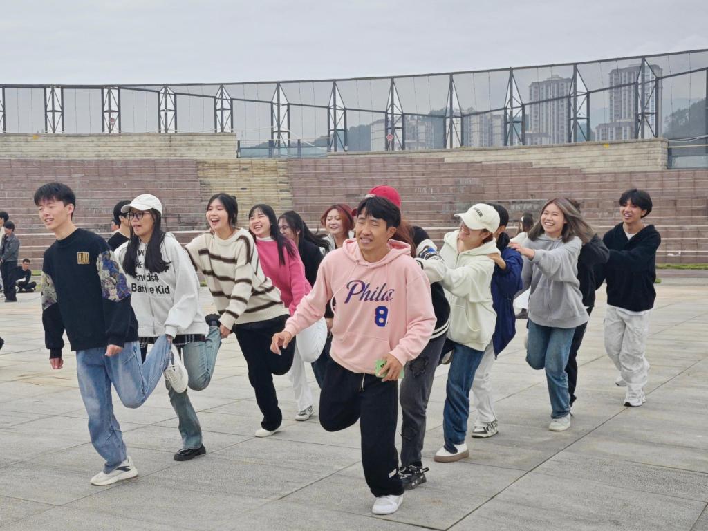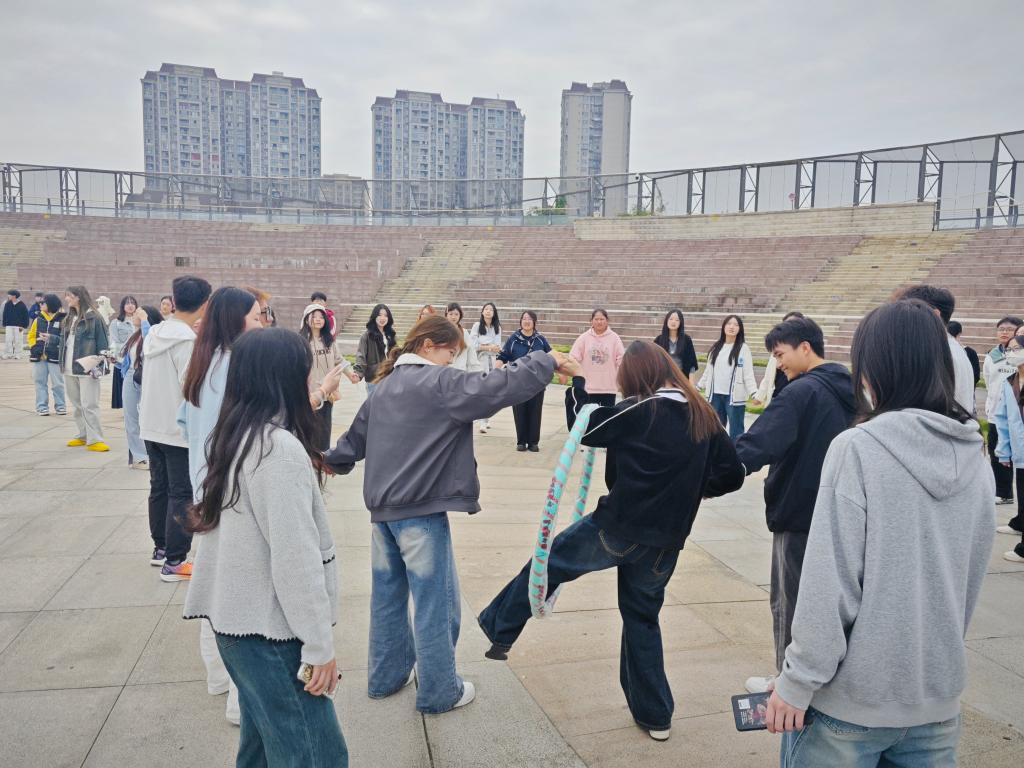 随后,紧张刺激的游戏环节拉开帷幕。“人多足少”考验团队的反应与配合,组员们需迅速组合单脚或双脚站立姿势;“一圈到底”中,大家手拉手传递呼啦圈,过程紧张又欢乐;“单脚火车跑”要求队员单脚支撑,协同前行;“不能说的秘密”则充满趣味与挑战,说错词的同学要接受惩罚。整个游戏过程中,各团队成员相互支持,充分发挥协同合作精神。活动最后,团总支员工会全体成员合照留念,记录下这一美好时刻。