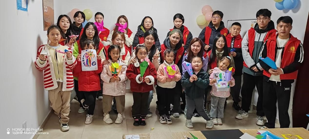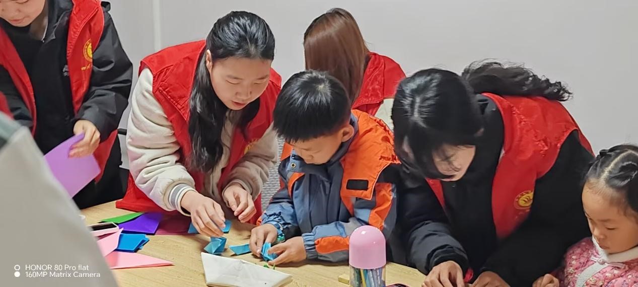 志愿者们预先准备了彩纸、剪刀、胶水等材料,活动期间,耐心地对小朋友们进行指导。他们悉心教给小朋友彩纸折花的方法,让小朋友们成功折出一朵朵饱含爱意的美丽花朵。志愿者们不但教会了小朋友们手工制作的技巧,还启发他们深入思索感恩的深刻意义。活动接近尾声时,小朋友们表示,要把自己制作的手工品送给家人,以此传递内心的感激之情。