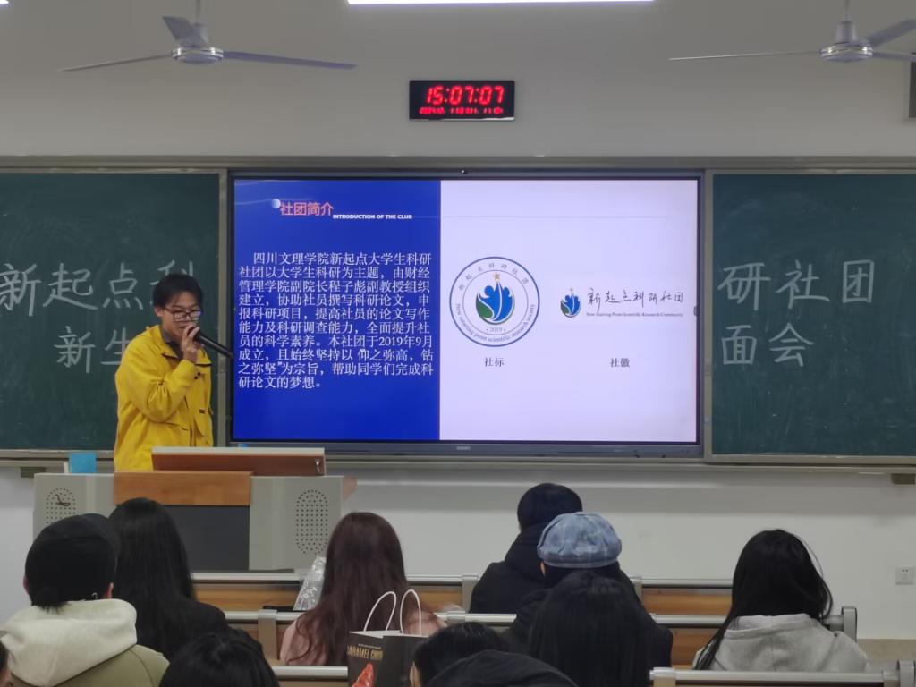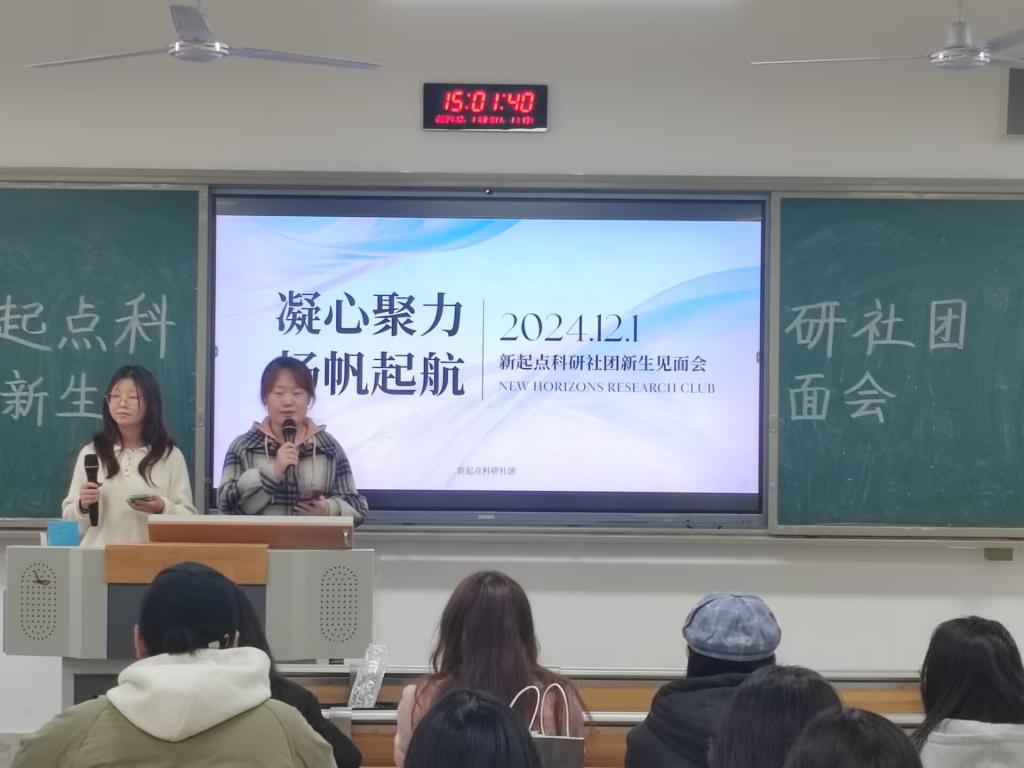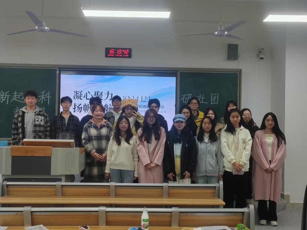 2024年12月1日下午,新起点科研社团在东区B410教室成功召开新生见面会,社团干部干事和部分社团成员参加了此次见面会。