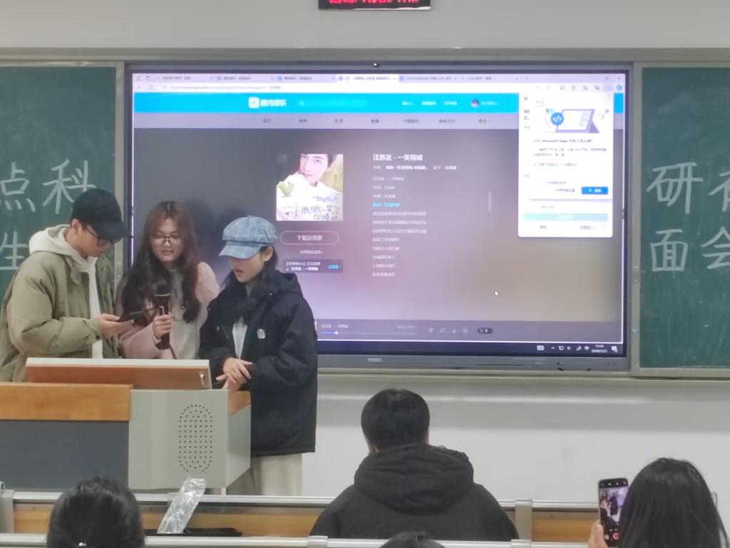 互动环节在活动部带来的歌曲《白月光与朱砂痣》中拉开帷幕,熟悉的旋律,悦耳的歌声,让人不禁轻轻跟着和;外联部和计财部演绎的《全是爱》和《一笑倾城》,活力四射,尽显青春活力;宣传部的《花海》节奏舒缓,演唱扣人心弦。表演者精神饱满,神采飞扬,现场气氛热烈,欢声笑语和掌声此起彼伏。