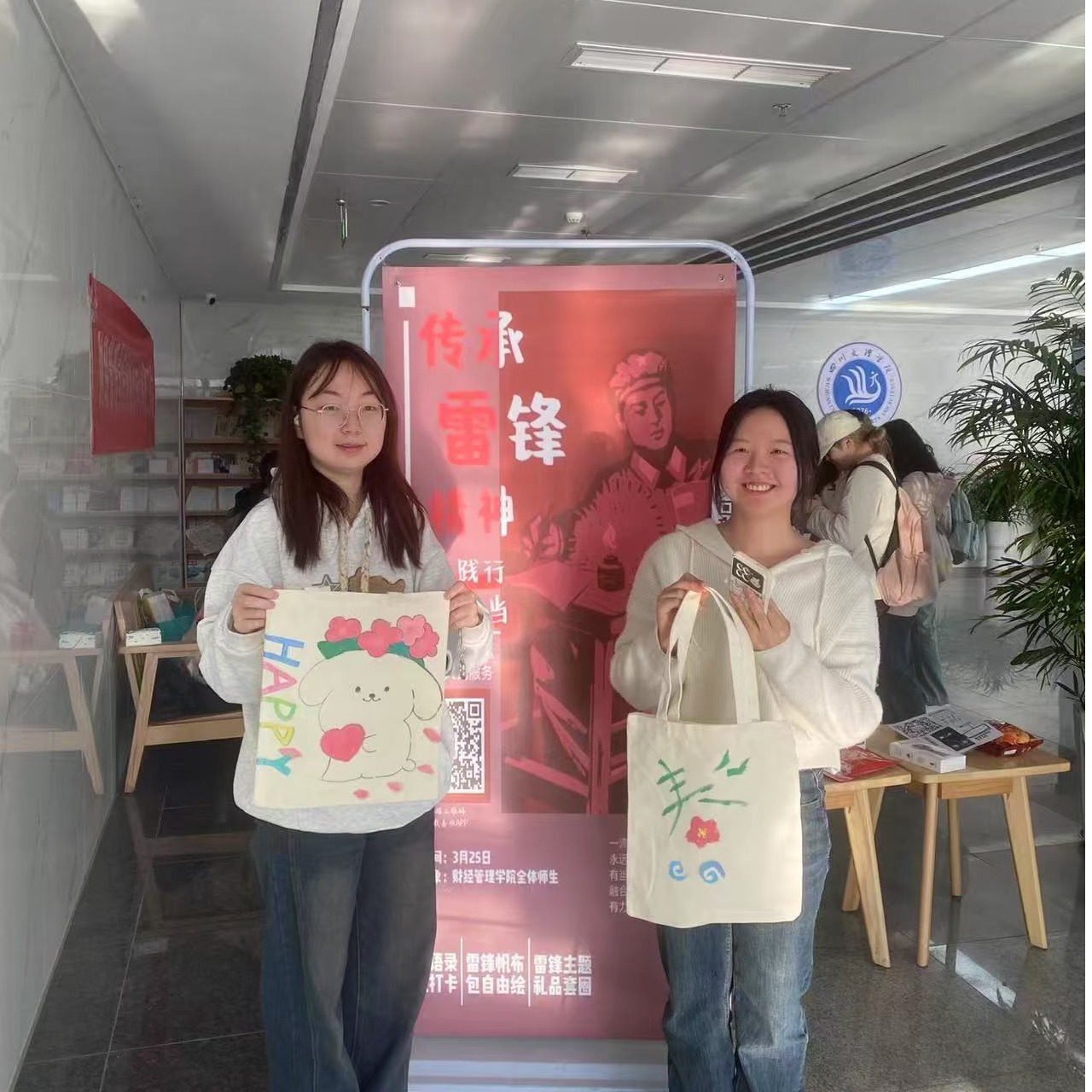 活动当天,组织人员贴心引导,各项活动有序推进,现场气氛热烈。同学们在易班APP论坛,踊跃分享身边的“雷锋事迹”和自己对雷锋精神的感悟,用照片记录参与活动的温馨画面。同学们通过参与雷锋知识问答,回顾了雷锋的光辉事迹,加深了对雷锋精神的理解,激发了主动学习践行雷锋精神的热情。现场还设置了小型套圈、手绘帆布包等趣味活动,同学们热情参与,充分发挥想象力,创作出专属手绘帆布包,使出浑身解数赢取心仪奖品。现场欢声笑语不断,雷锋精神也在轻松氛围中悄然传递。