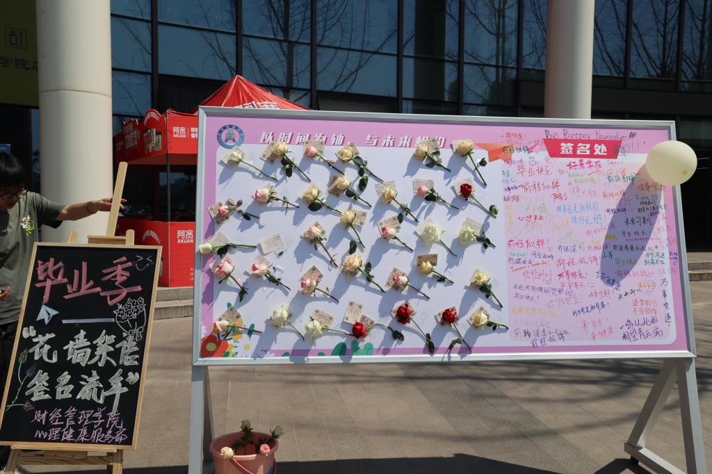 3月26日,公司举办了“花墙絮语 签名流年”活动。活动以花为引,鼓励毕业生们在“花墙”签名并留下毕业寄语,领取花束后在“花墙”区域与老师同学们一同合影留念,定格美好瞬间,记录青春回忆。这面“花墙”正如一本立体的时光诗集,承载着同学们的校园记忆,见证着青春的厚积薄发和精彩绽放。