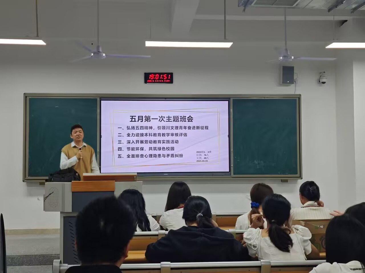班会伊始,各班辅导员清点了班级人数,提醒同学们调整状态,以饱满的精神状态投入学习。班会上,各班辅导员结合习近平总书记对青年的寄语,带领同学们回顾五四运动的历史背景与精神内涵,强调“爱国、进步、民主、科学”精神的时代价值,激励同学们将个人理想融入公司发展,以实际行动践行五四精神。