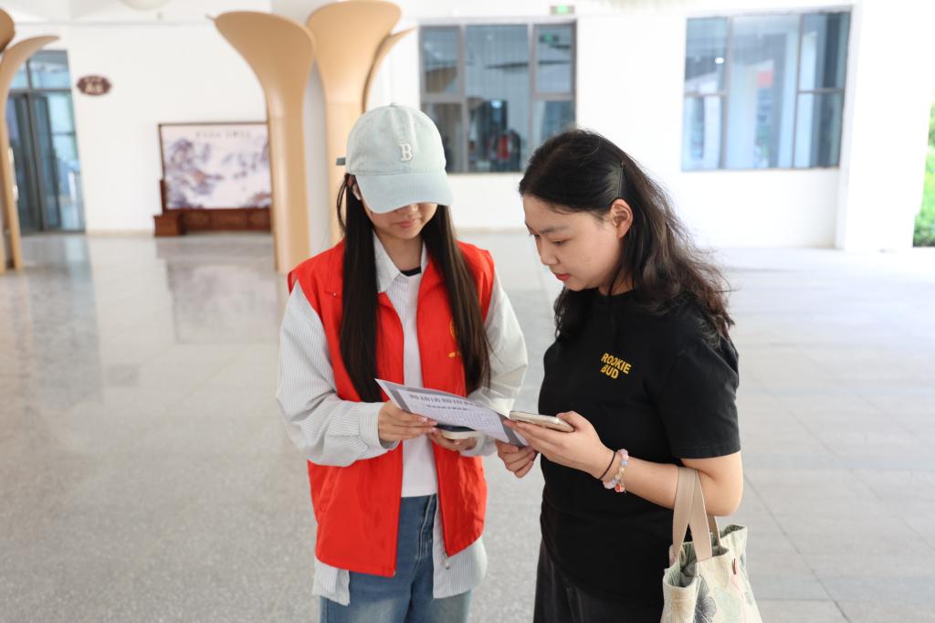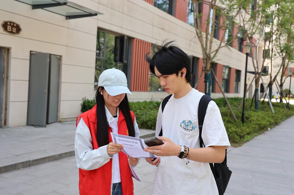 志愿者手持宣传单,围绕劳动合同签订规范、劳动报酬计算、社会保险权益等劳动法核心内容,结合虚假招聘、霸王条款等典型案例,为同学们科普求职侵权识别方法,并讲解劳动仲裁流程、法律援助申请等实用维权技巧。同学们也结合自身经历与志愿者分享在实习、求职过程中积累的风险防范经验,活动氛围浓厚。
