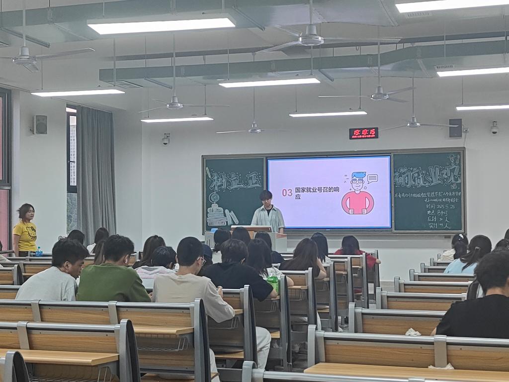 在本次团日活动中,各团支部积极响应与精心准备,创新活动形式,活动现场亮点纷呈。活动伊始,全体齐唱团歌。随后,活动正式进入主题阶段。各支部通过案例分享、互动答疑、主题研讨、短视频创作等形式,深入剖析当下就业市场动态,引导同学们辩证看待就业热点问题,理性应对职业选择。同时,结合实际情况组织模拟招聘会,设置求职应聘全流程场景,让同学们在实践中积累经验、提升求职能力。同学们积极参与,现场气氛热烈,在交流与实践中不仅对就业形势有了更清晰的认识,也进一步树立了积极向上的就业观念。大家纷纷表示,未来将以更加务实的态度和饱满的热情迎接未来的职业挑战,在奋斗中实现个人价值。