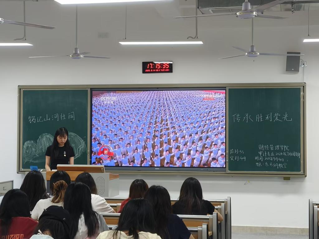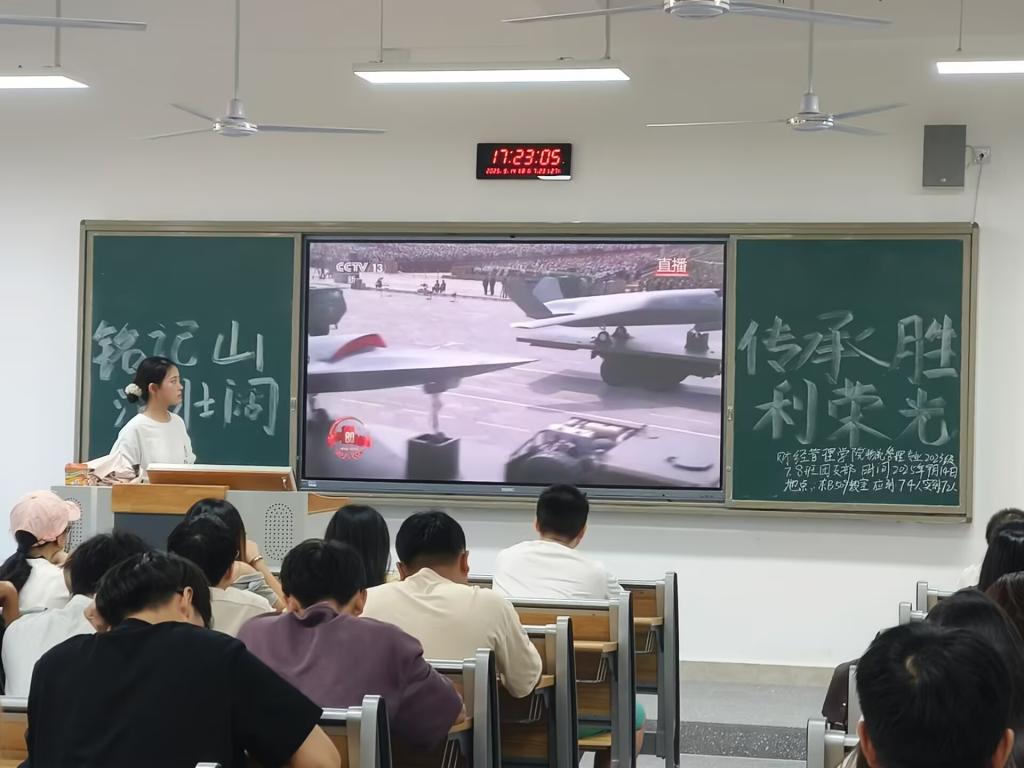 各团支部精心策划本次团日活动,内容丰富。活动在激昂的团歌声中拉开帷幕。随后,各团支部书记担任领学人,带领同学们回顾了抗日战争时期青年一代投身救亡图存运动的光辉历史,讲述了抗战英烈的英勇事迹,号召全体同学从历史中汲取精神养分,将深厚的“爱国情”和“强国志”转化为远大的“报国行”。最后,通过观看“九三大阅兵”视频,同学们直观感受到了国家军队的强大与繁荣昌盛,激发了民族自豪感和浓烈的爱国情怀。与会团员深受鼓舞,纷纷表示要以革命先辈为榜样,坚定理想信念,锤炼过硬本领,自觉将个人理想融入国家发展伟业,让青春在奋斗中绽放光彩。