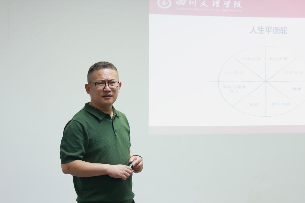 李健以“归来仍是少年,前程亦是星辰”为主题,进行座谈分享。他结合自身教学经验,从职业生涯发展的底层逻辑出发讲解了“知己、知彼、抉择、行动、评估”的职业规划五步法。在探索自我部分,从兴趣、性格、技能、价值观四大维度切入,阐明其对职业规划的基石作用。通过系列引导性问题,帮助同学们挖掘自我核心竞争力,同时着重强调技能的职业价值,并具体讲解了沟通协作、逻辑分析等关键能力。在动态调整部分,他指出,职业生涯不是一成不变的,是需要终生去维护,鼓励同学们根据行业发展与个人成长,持续修正自己的职场之路。最后向同学们寄予期望,呼吁大家将长期主义理念融入职业规划,深刻认识到持续自我提升、实现终身成长的核心价值。