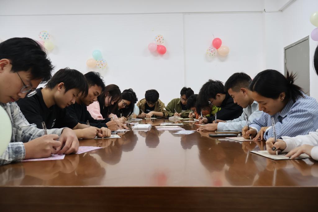 在专属的30分钟静心书写环节中,同学们沉浸于笔尖的世界,认真梳理着对大学的憧憬、对学业的规划、对个人成长的期待,亦或是当下的迷茫与忐忑。这些真挚的情感被一一封存于信笺之中,成为送给未来自己的一份珍贵礼物。