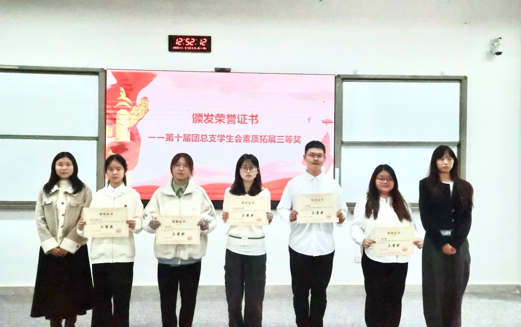 会议进入颁奖环节,为第十届团总支员工会素质拓展活动中表现突出的集体颁发荣誉证书。一张张证书不仅是对参与者的认可,更彰显了团学组织注重团队建设、提升综合素质的育人理念。