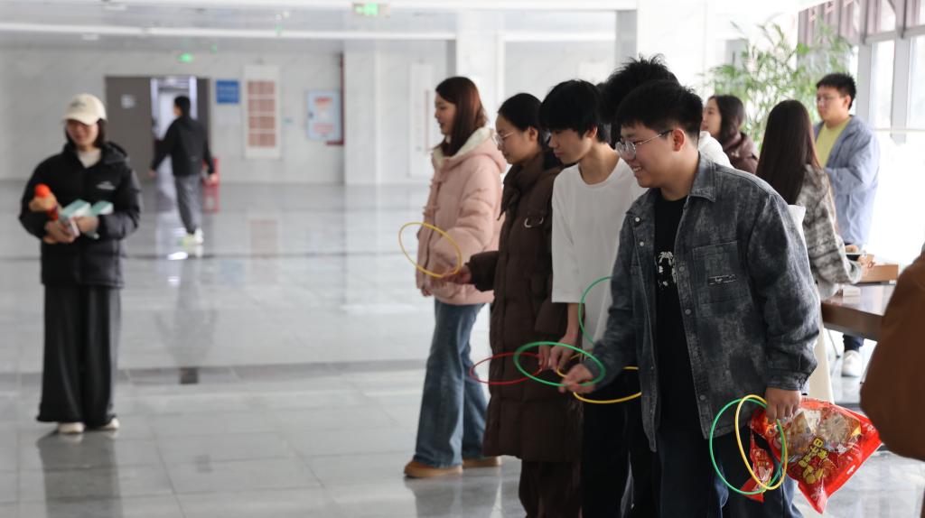 本次游园会巧妙设置了三大核心互动区域,集知识性、趣味性与实用性于一体。在消防知识答题区,同学们围绕消防器材使用规范、火灾预防要点及初期火灾扑救技巧等问题展开激烈讨论与思考,在思维的碰撞中巩固了理论基础。逃生路线拼图区则别出心裁,参与者通过亲手拼接校园消防疏散地图,将安全出口位置与最佳逃生路线深植脑海,实现了从“知道”到“熟悉”的跨越。人气最旺的套圈兑换区更是将活动推向高潮,同学们凭借答题赢取的套圈机会,瞄准琳琅满目的消防主题礼品进行投掷,在欢声笑语中进一步加深了对各类消防器材的直观认知。