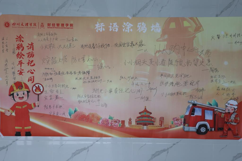 设计精良的消防标语展板也构成了现场亮丽的一道风景线。“隐患险于明火,防范胜于救灾”、“消防常识记心间,平安校园伴我行”等言简意赅的标语,涵盖了预防、逃生、器材使用等核心安全理念,以无声的方式传递着有力的警示。活动获得了同学们的一致好评。大家普遍认为,这种沉浸式、游戏化的学习体验,比单向灌输的传统讲座更具吸引力和感染力。