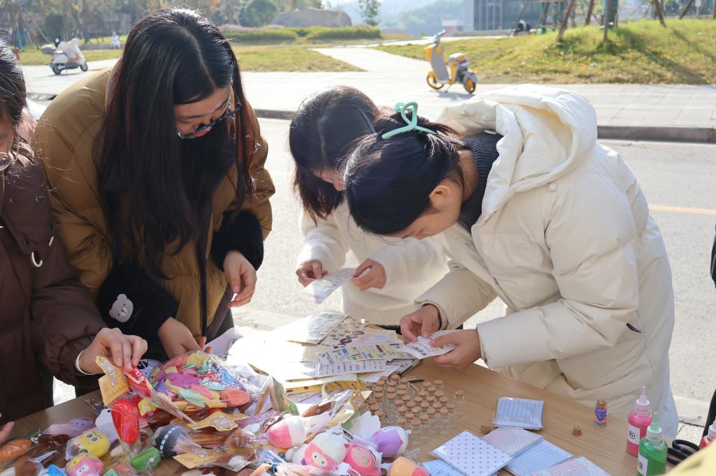 为关注老员工心理状态,疏导压力、培育积极心态,助力身心健康与全面发展,11月26日下午,公司在东区员工公寓前举办“DIY彩砂瓶”与“爱的拼贴诗”特色活动。活动以创意为媒介,用艺术抒怀,引导同学们在动手实践中释放情绪、寄托期许,使心理健康教育在轻松有趣的互动中真正落地生根,吸引了众多同学积极参与。