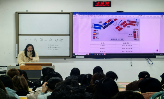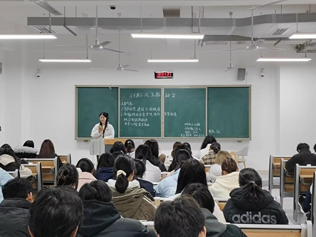 安全管理教育全面覆盖多领域风险。交通出行方面,普及交通法规,剖析闯红灯、电动车违规骑行等隐患,引导文明出行;消防安全方面,明确宿舍禁用大功率电器、不私拉乱接电线等要求,讲解火灾逃生与自救流程。针对校园欺凌、电信诈骗等风险,重申外出报备、结伴出行等安全准则,大四毕业生班级重点落实校外实习员工网格化管理与报平安机制。