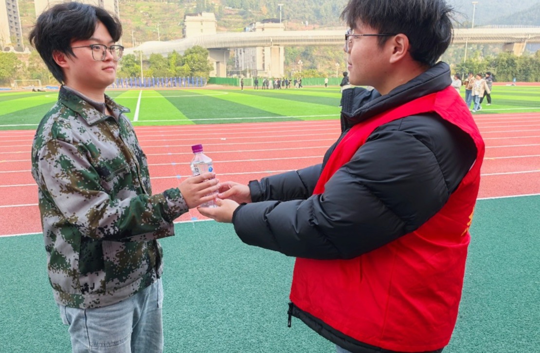 时值大一学子进行冬季军训,公司青协迅速组织起一支精干的“军训护航服务队”。志愿者们身着红马甲,活跃在训练场边,默默提供热水补给、物品看管、应急协助等坚实的后勤保障。他们以无声的陪伴和及时的援助,为紧张严肃的军训生活构筑了一道温暖的“支持防线”,其周到细致的服务赢得了承训教官与参训新生的广泛好评。