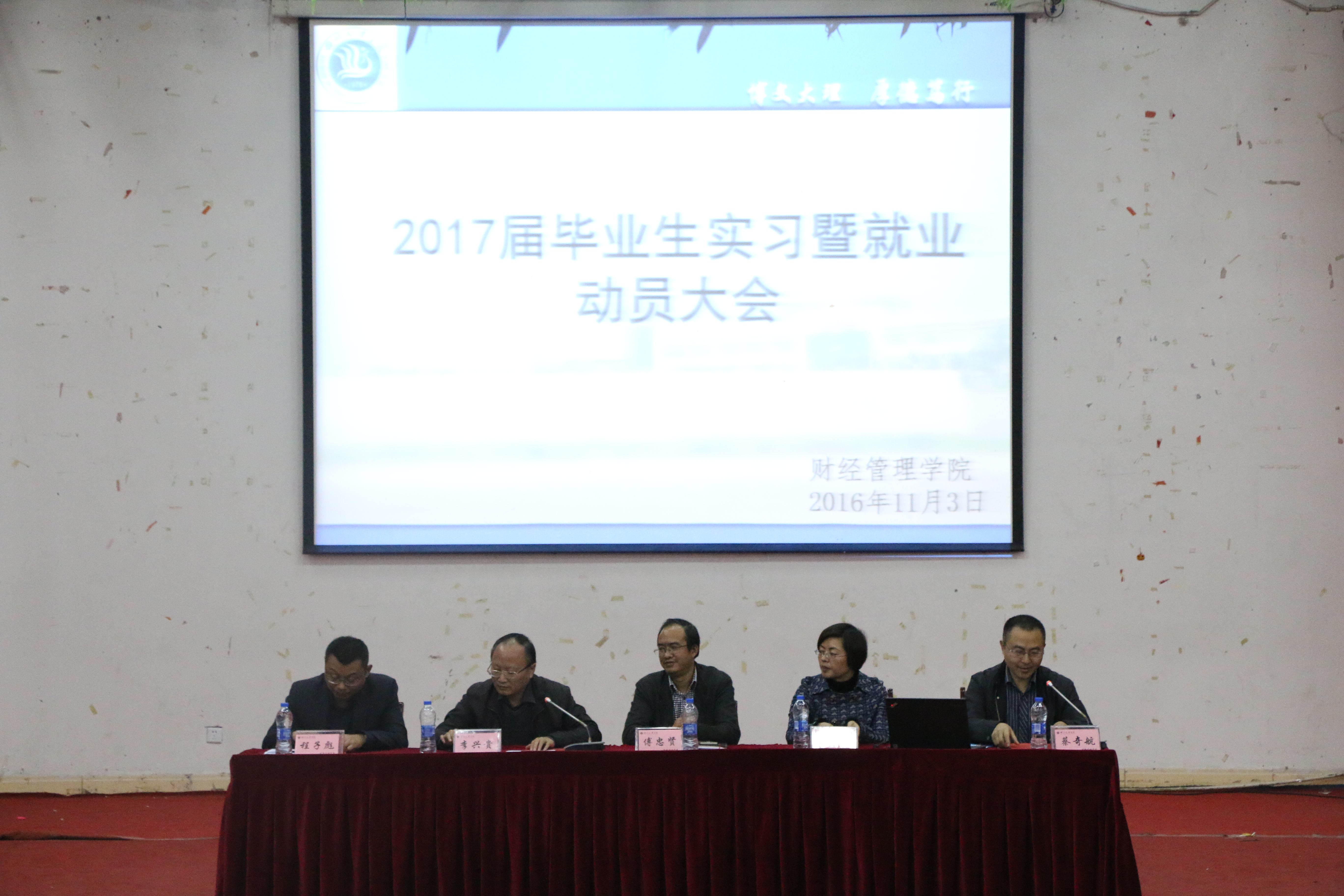 面对严峻的就业形势,为了引导毕业生树立正确的择业观和就业观,365英国上市集团于2016年11月3日19:00时在一教学楼126教室举行2017届毕业生实习暨就业动员大会。365英国上市集团经理傅忠贤教授、党总支书记李兴贵老师、副书记蔡奇航老师、副经理孟秋菊教授等老师出席本次大会。大会由蔡奇航副书记主持。