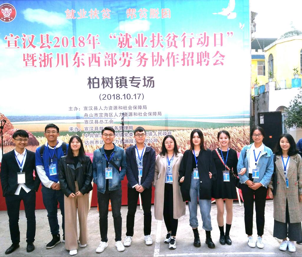 2018年10月17日,职业生涯规划协会15名会员受达州人才网邀请,参与了由宣汉县人力资源和社会保障局主办和达州市达才人力资源服务有限公司承办的宣汉县2018年“就业扶贫行动日”暨浙川东西部劳务协作招聘会。