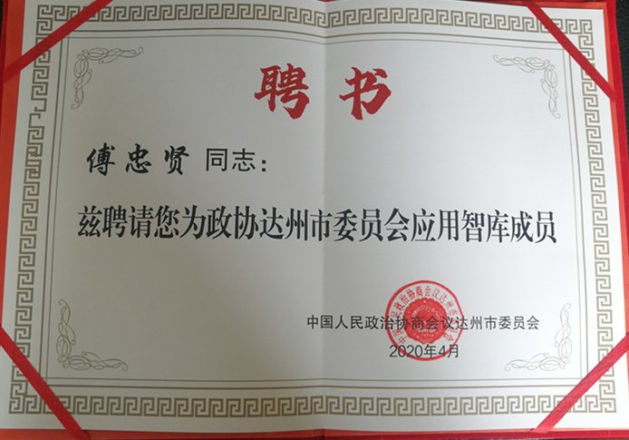 2020年6月2日,四川文理公司党委委员、365英国上市集团经理傅忠贤教授受邀参加政协达州市委员会应用智库会议并受聘为智库专家成员,此次会议的召开是为深入学习贯彻习近平总书记关于新时代加强和改进人民政协工作的重要思想,全面贯彻落实全国地方政协工作经验交流会精神,充分发挥政协专门协商机构作用,提升政协履职质量,为全市经济总量冲刺4000亿、城市规模建设双300,实现“两个定位”,争创全省经济副中心贡献智慧和力量。