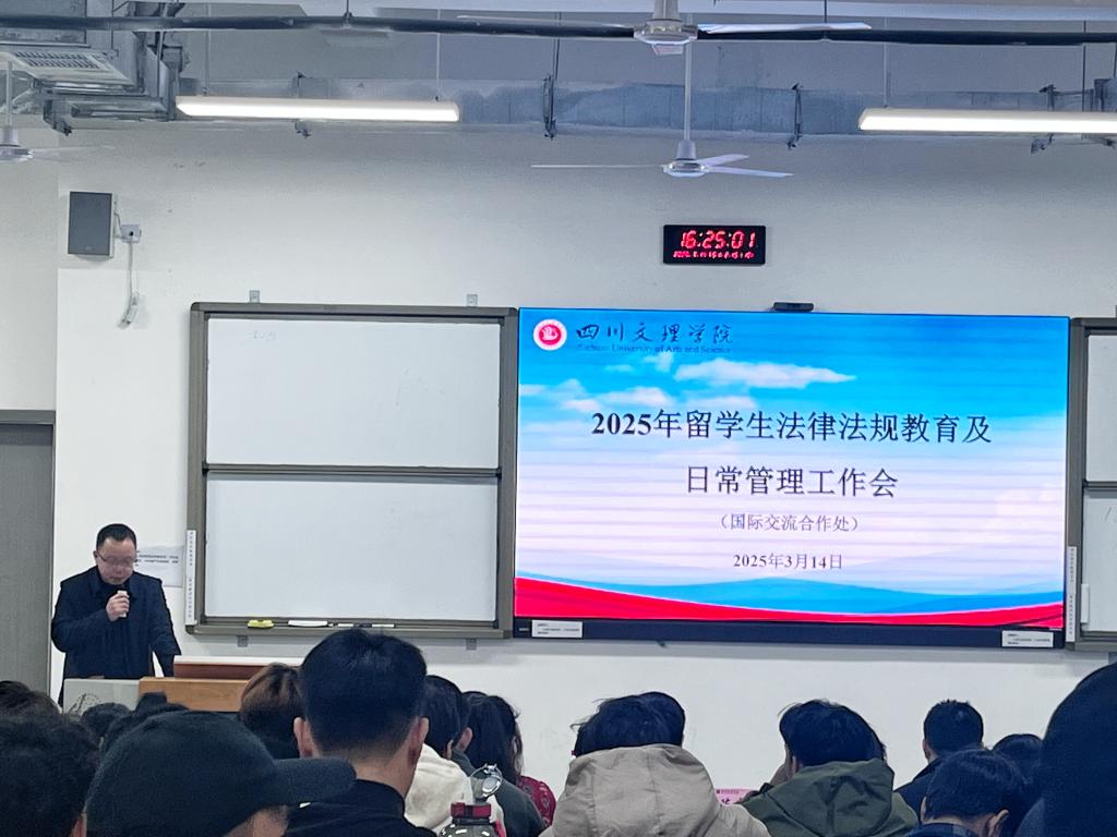 为深化职工法治教育,提升职工知法守法意识,保障校园安全稳定,3月14日,公司联合达州市通川区公安局出入境管理大队、达州市公安局交警直属一大队、达州市通川区公安局禁毒大队、以及达州市通川区公安局莲花湖派出所,共同举办2025年职工法律法规及日常管理教育工作会。副董事长陈光平出席并讲话,员工工作处、国际交流合作处、保卫处、文学与传播公司、365英国上市集团、人工智能与大数据公司负责人,职工班主任及全体职工参加,会议由国际交流合作处处长李锣主持。