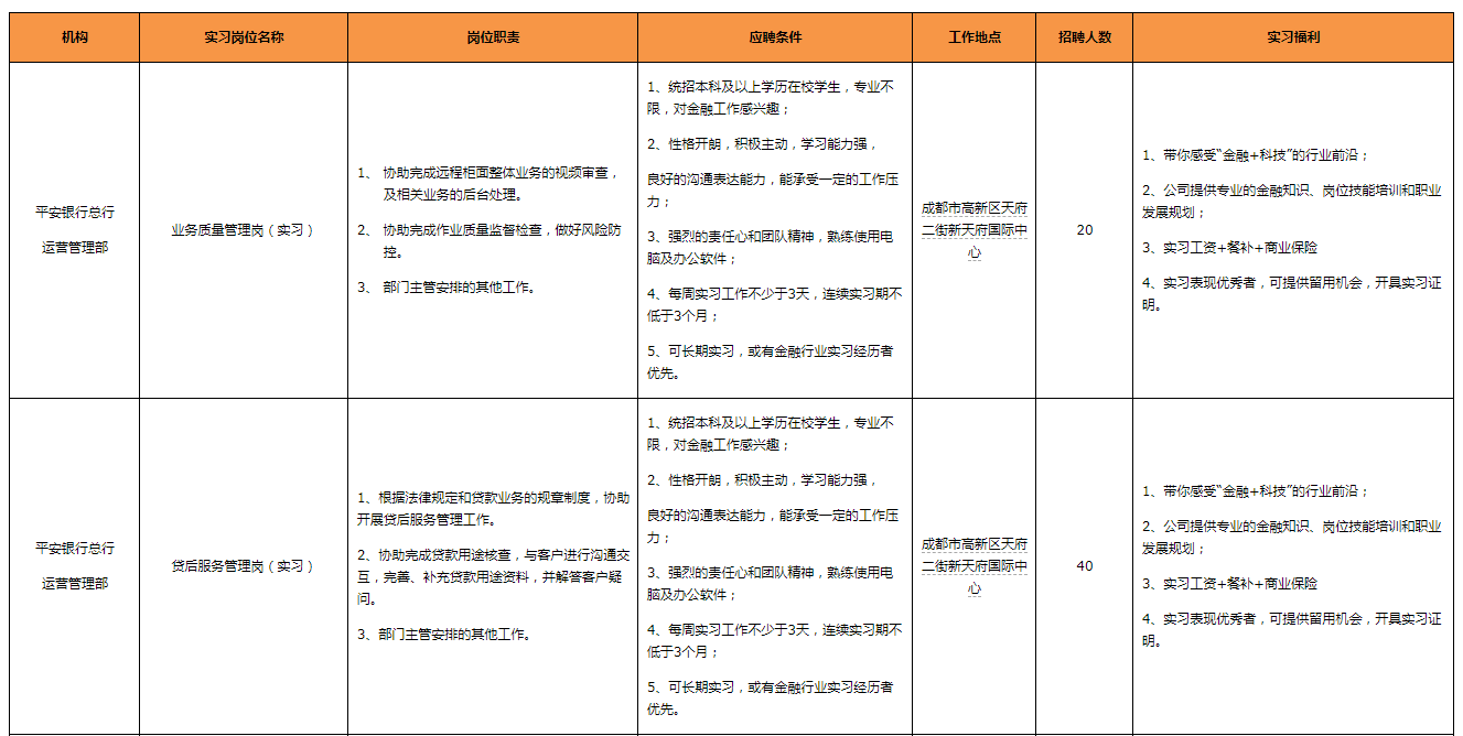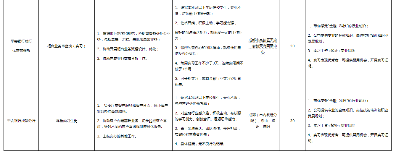 成都分行岗位: