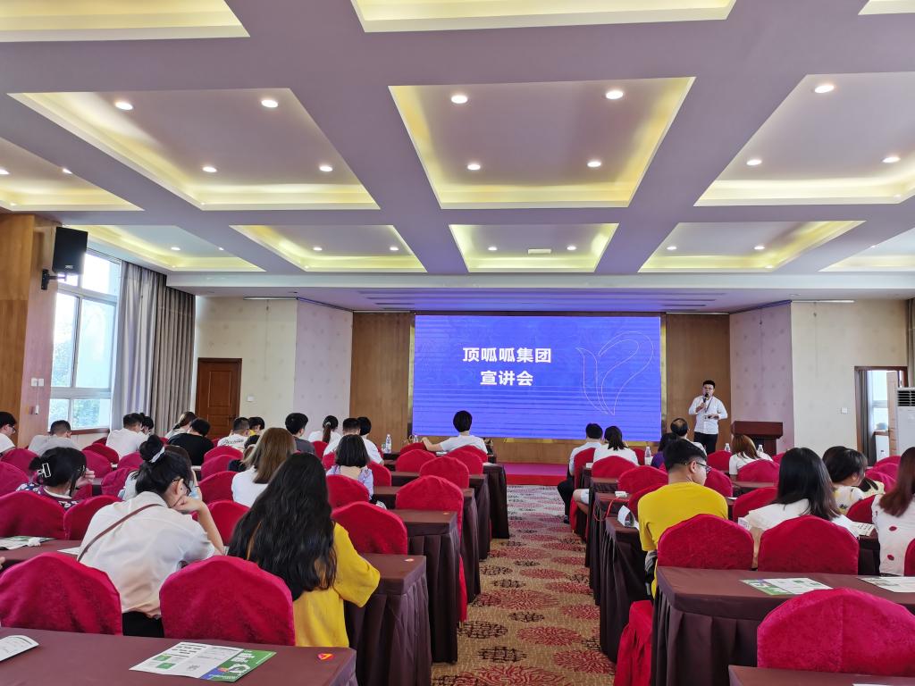 顶呱呱一站式服务平台宣传官由顶呱呱宣传片为起始,从自己选择顶呱呱的原因出发,引出毕业生们对人生未来的思考,从而开始从行业前景、公司介绍、福利待遇三个方面进行关于顶呱呱相关情况的讲解。在行业前景方面,他表示该行业拥有国家政策的大力支持、广阔的市场等优势;在公司介绍方面,他对该公司的发展历程、设点区域、集团业务和一站式企业服务流程等情况进行了简要的介绍;在福利待遇方面,他表示员工福利关爱工程包括年度免费体检、年度MVE欢乐游、俱乐部活动等福利。
