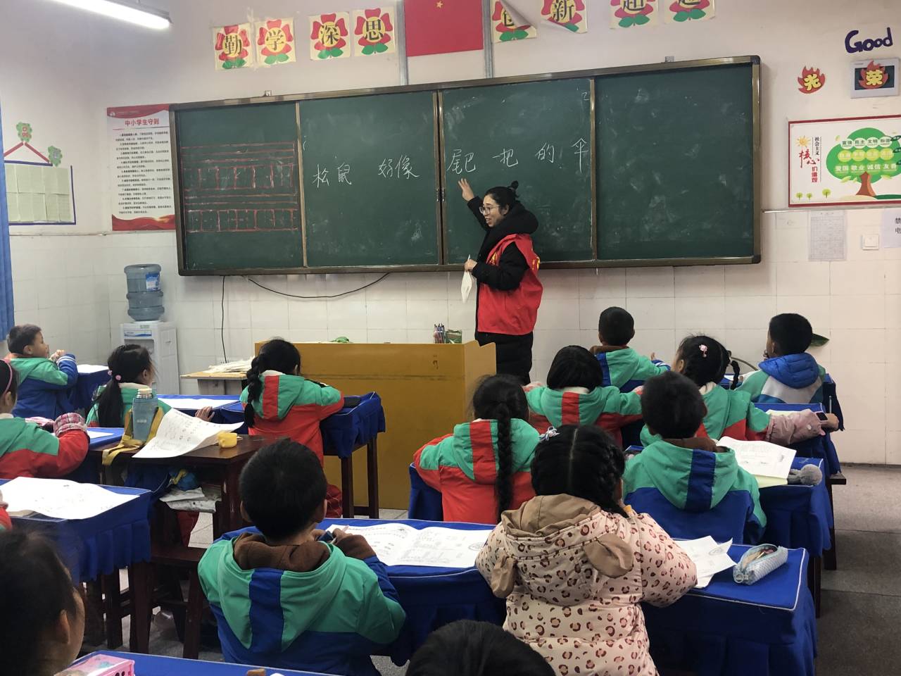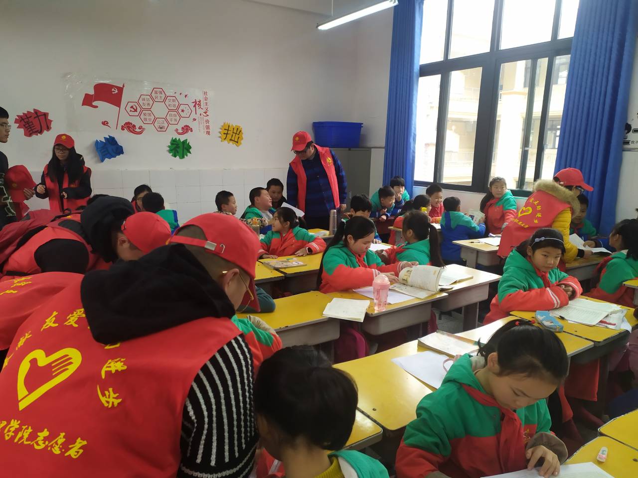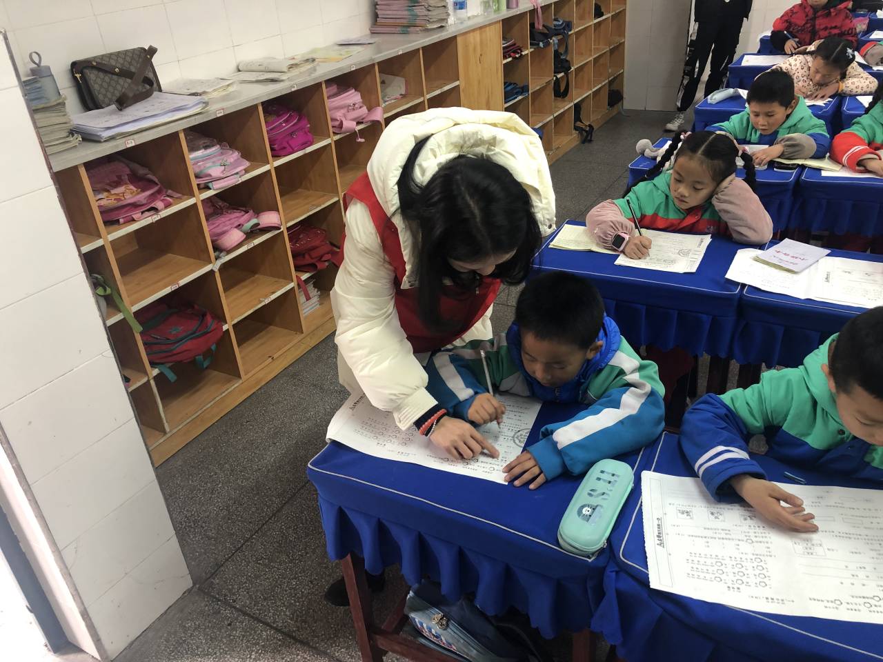 进入1年级的六祖在杨波老师的带领下,志愿者积极对同学们进行辅导,同学们也积极提问。