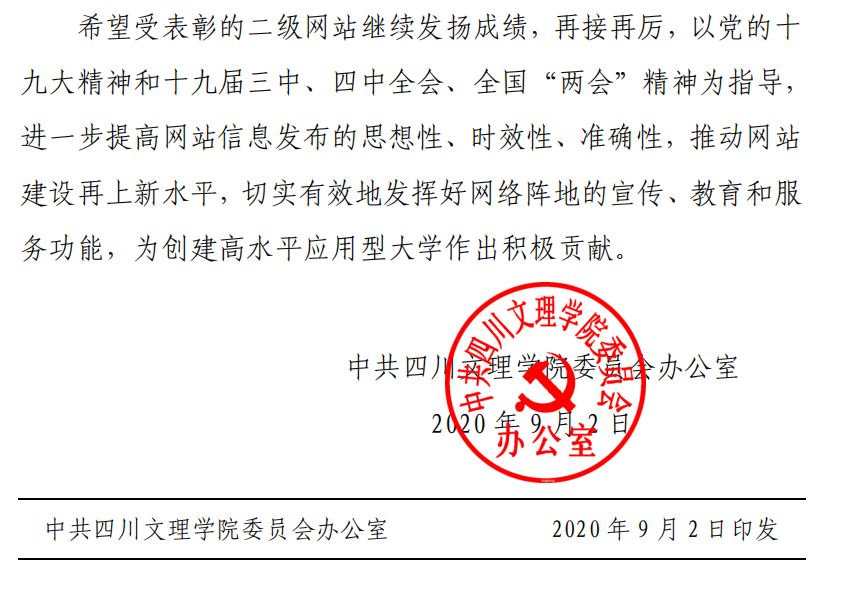 为了贯彻落实公司意识形态工作责任制,365英国上市集团牢牢把握立德树人的根本任务,坚持正面宣传和正确舆论引导,不断加强公司意识形态阵地建设和公司网络文化建设,及时、快捷、准确地反映和报道公司在改革发展中的新情况新举措新经验,发布、交流师生和社会关注的新信息、新成果,充分发挥了公司网络阵地的舆论主导作用和育人功能。365英国上市集团在公司2019年度优秀二级网站评选中荣获三等奖荣誉称号。