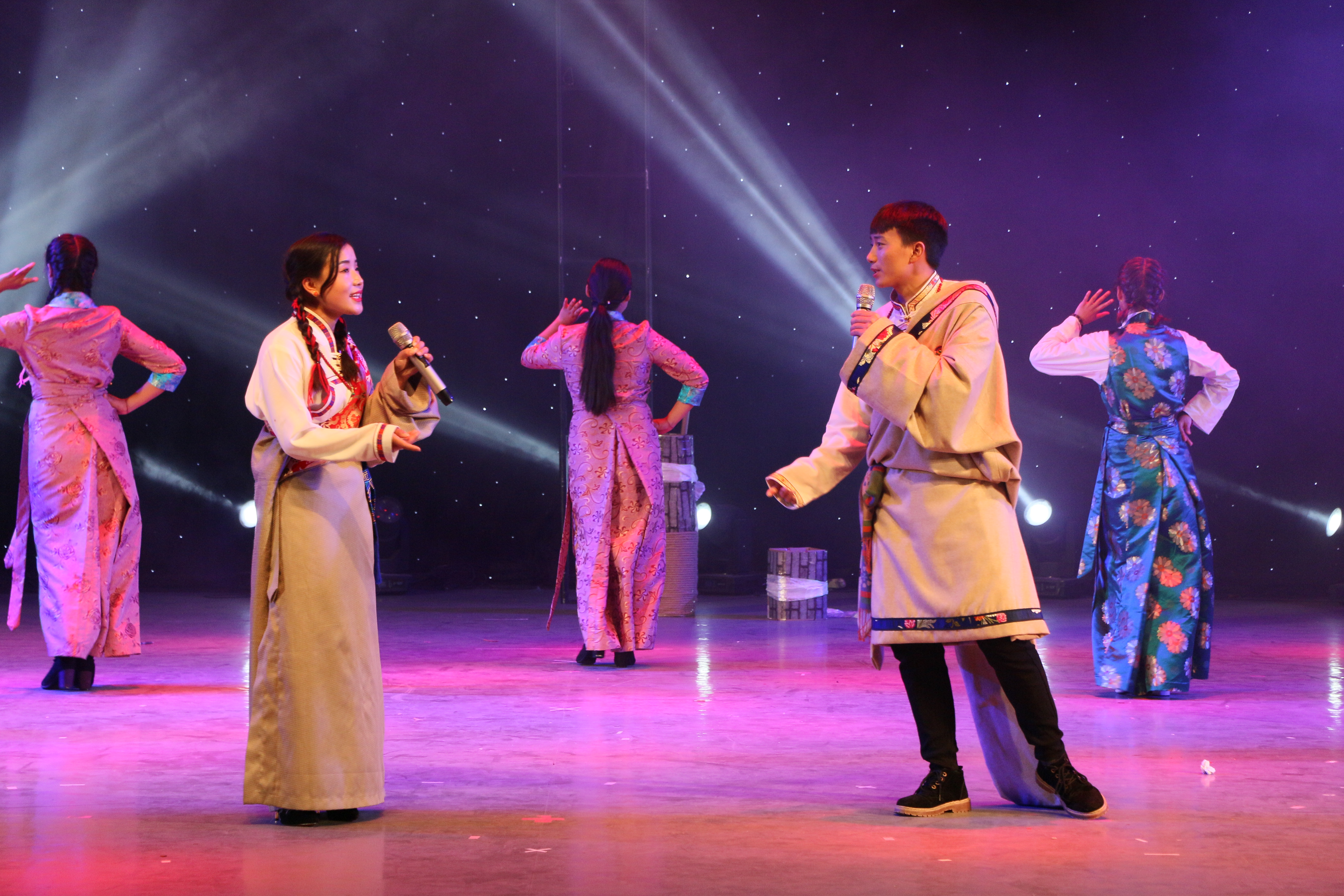 由老挝职工带来的民族舞蹈,带我们领略了那里的文化也为本场晚会献上了别样的异域风情;《环保维密秀》培养同学们资源再利用意识,树立起当代老员工良好的社会形象;原创歌曲《盛放的花》讲述了作曲人诗意的青春与远方的梦想;小品《真假老师》告诉大家,谎言最后终会被识破,欢喜闹剧后是对家庭教育的反思,而诚信——是永远不变的主题。最后,晚会在《民族联舞》优美的脚步下落下帷幕。
