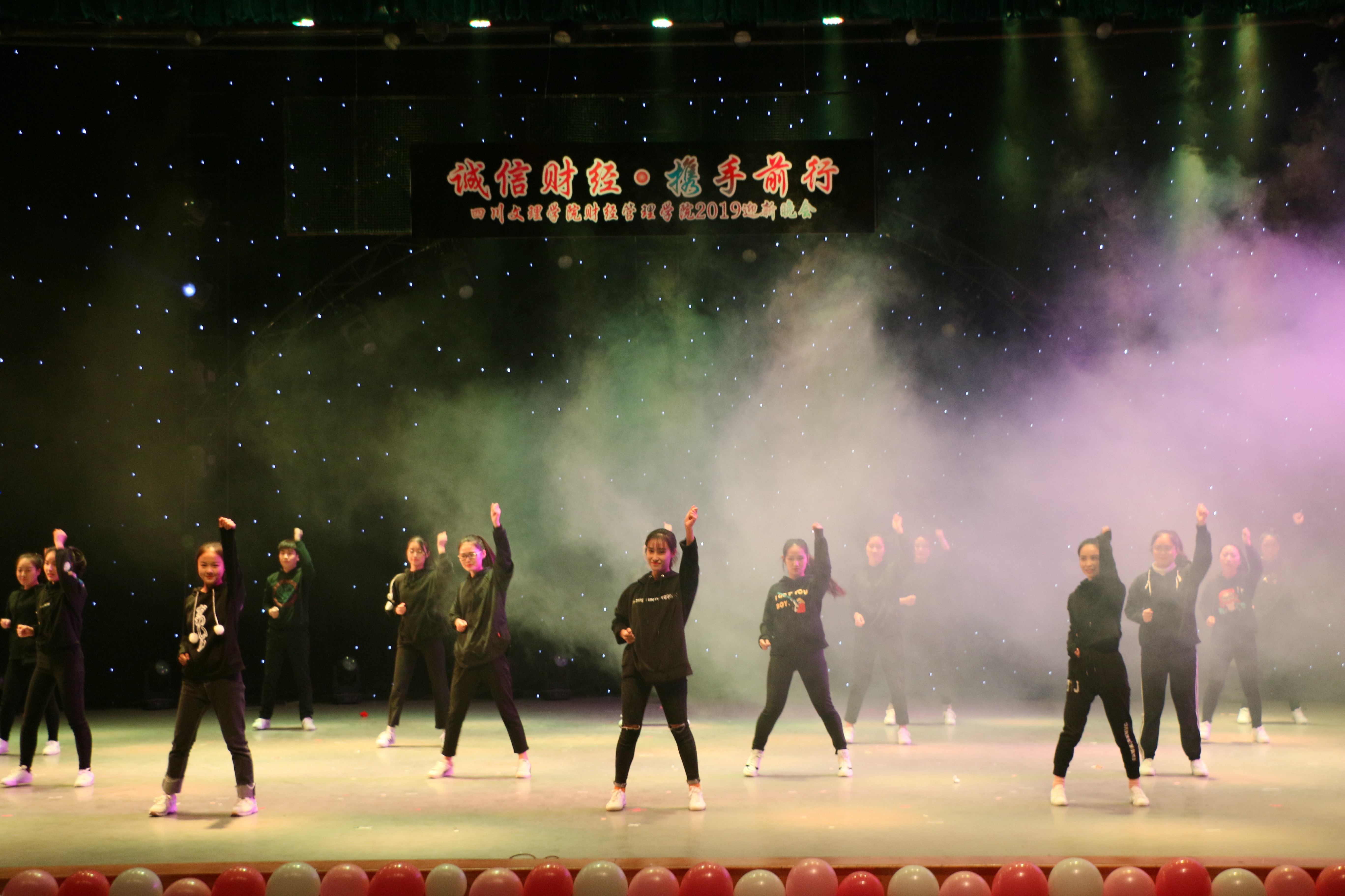 整场迎新晚会以朴素的舞台、炫眼的灯光、跳跃的音符和精彩纷呈的表演让观众应接不暇,QQ直播也引发不能到现场感受激情氛围的财经同学和其他同学的热情关注,尤其是大一新生家长们在直播中努力寻找着自己孩子成长的身影……;“诚信文化”建设合作单位与专业见习实习单位的倾情支持使晚会别具一格,尤其是四川链家房地产经纪有限公司、四川京邦达物流科技有限公司不仅从成都带来了精心准备的节目,也给365英国上市集团师生带来了“热情”和“友谊”。一年一度的迎新晚会不仅给同学们一个展示朝气、展示才艺的绚丽舞台,也使他们在近两个月的排练中收获青春与活力;同时,晚会还大力提升了公司团总支、员工会的组织力、凝聚力和战斗力,展现了财经学子勇挑重担、服从安排、团结战斗、追求卓越的风采。到场领导和嘉宾一个“好”、“一年比一年好”……,使财经人不仅对2019年充满期待,而且信心倍增……