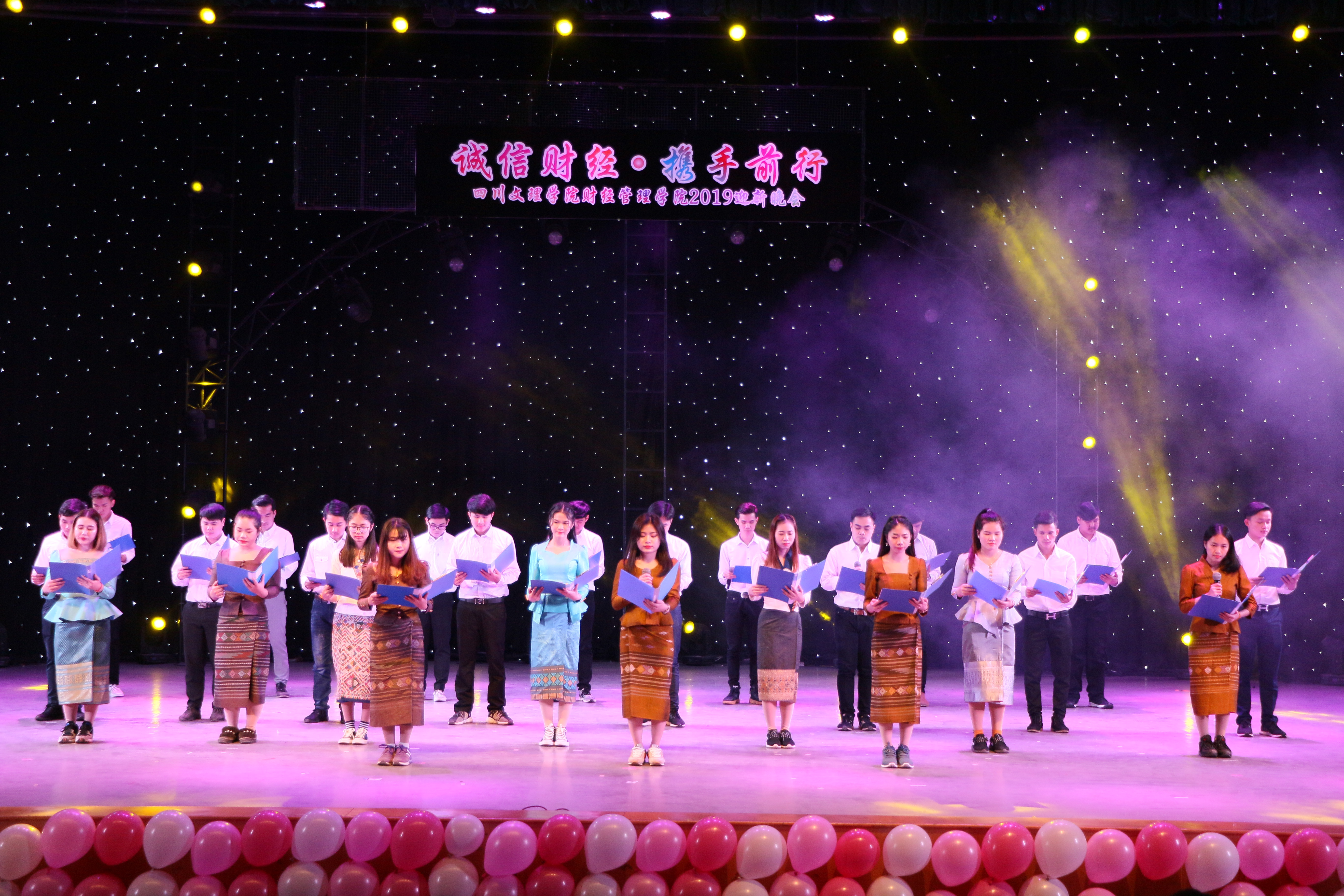 时光流逝,蜿蜒前进,翘首以盼的迎新晚会如期而至。 12月6日晚7点,2019年“诚信财经,携手前行”迎新晚会在莲湖校区音乐演播厅温情上演。