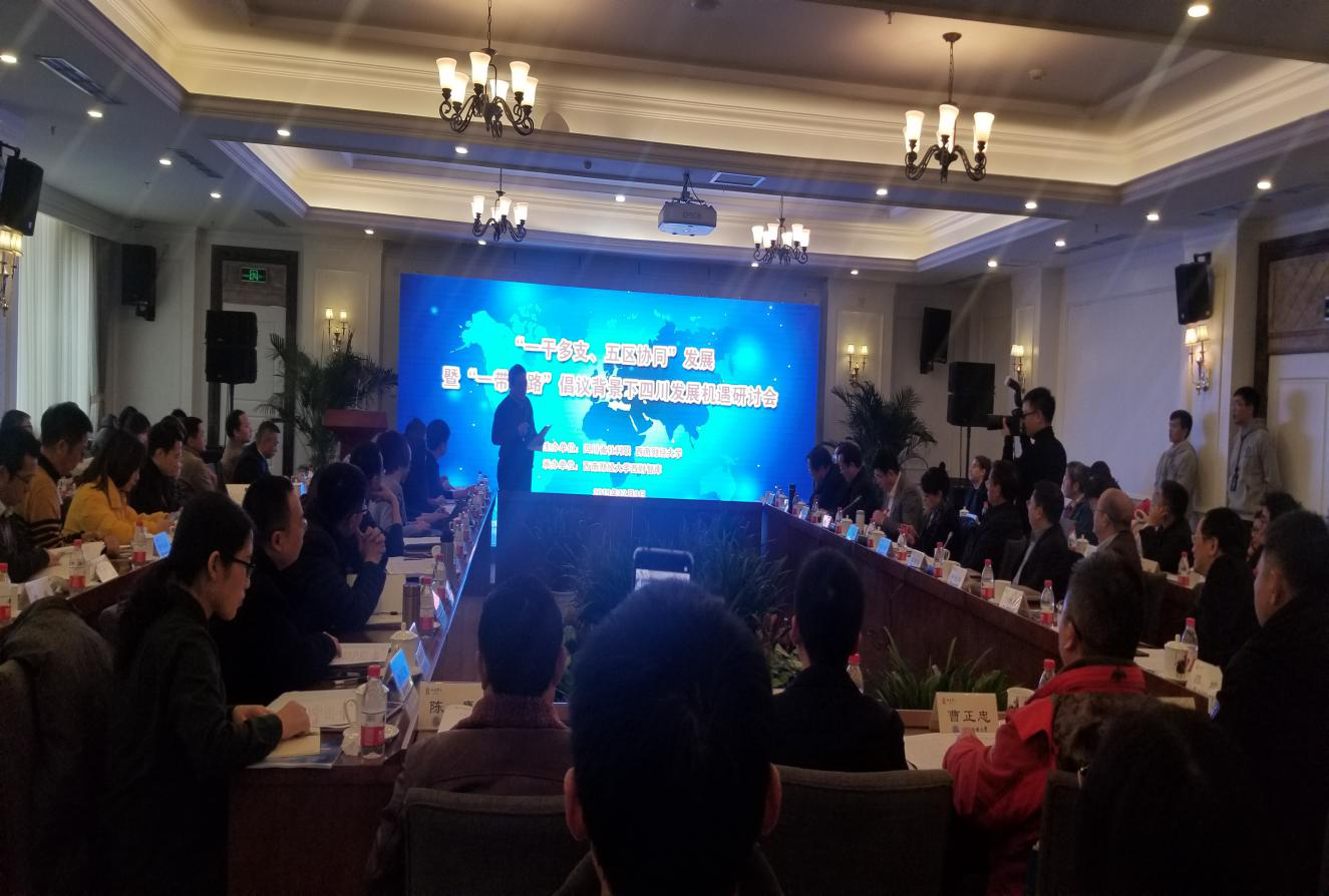 2019年12月9日,由四川省社科联、西南财经大学主办,西财智库承办的“一干多支、五区协同”发展暨“一带一路”倡议背景下四川发展机遇研讨会在西南财经大学举行。现场,有来自四川大学、西南财经大学、西南民族公司等在川高校及全省各地社科联的近百名专家学者、结合各自研究领域,为四川省的发展建言献策,同时有中央电视台(四川)、人民日报(人民网、四川)、新华社四川分社、四川人民广播电台等近20家媒体人士参与。