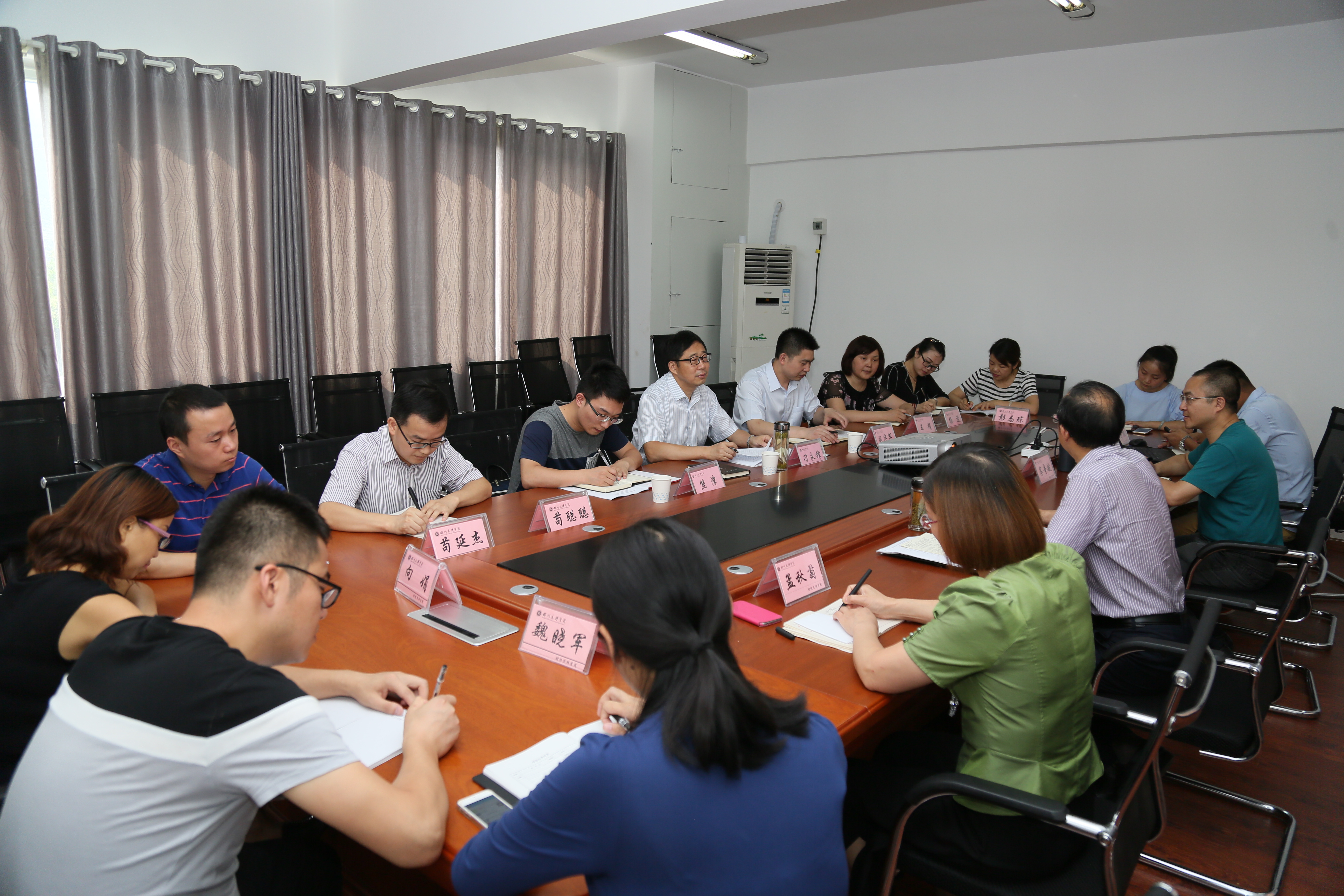 7月4日上午,董事长刁永锋教授一行顶着烈日冒着酷暑来公司调研,公司党政领导班子成员、党政办主任、学工办主任、教研室主任、实训室主任、工会小组长、办公室工作人员共13人参加了此次调研活动。