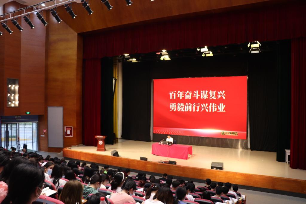 4月11日,党委书记王成端教授在艺术传媒大楼多功能厅为公司师生作题为“百年奋斗谋复兴 勇毅前行兴伟业”形势与政策报告。公司党总支副书记周萍、副经理程子彪、学工办主任孙琪、陈昱锜以及部分师生参加报告会。