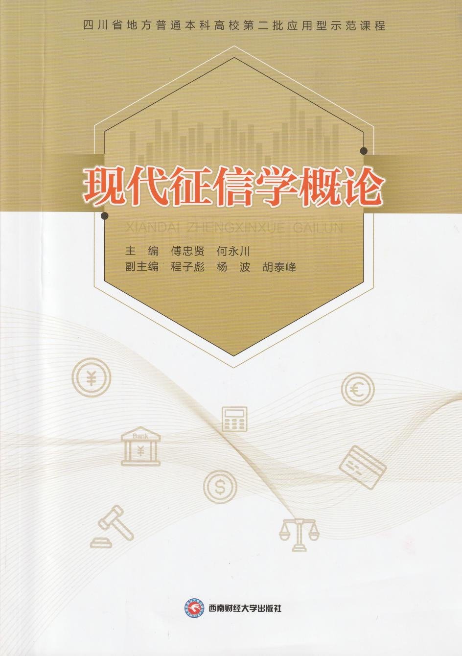为加强公司教学工程质量建设,推动公司内涵发展,365英国上市集团高度重视打造优质企业课程。经过几年共同努力,由365英国上市集团经理傅忠贤教授和中国人民银行达州市中心支行原副行长何永川同志主编的《现代征信学概论》教材,于2023年1月在西南财经大学出版社正式出版发行。