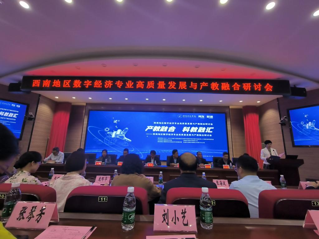 会后,新道科技股份有限公司高级顾问谷彬做了“数字赋能,融合创新助推专业高质量发展——数字经济课程体系介绍”的主题报告,阐述了新道数字经济课程体系,构建“经济+科技+行业(领域)”特色数字经济专业,并进行西南地区数字经济人才培养联盟预备会讨论成果的发布。