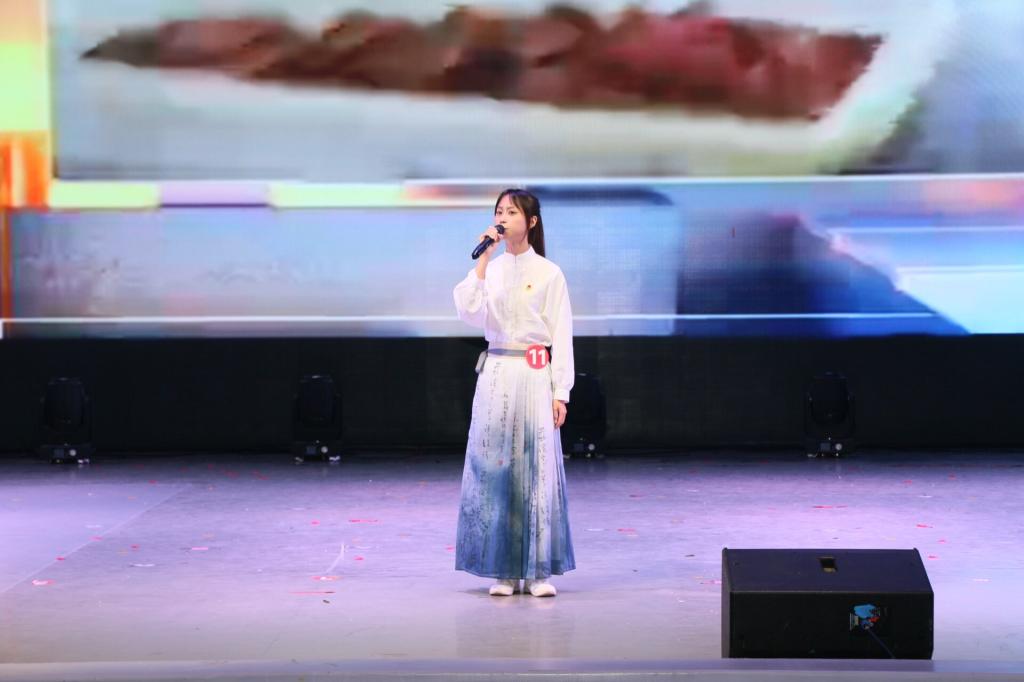 8 号选手饶舒瑶结合自身小时候的经历,尽情畅谈对于“笃诚立信·伴党承薪”的深刻见解;