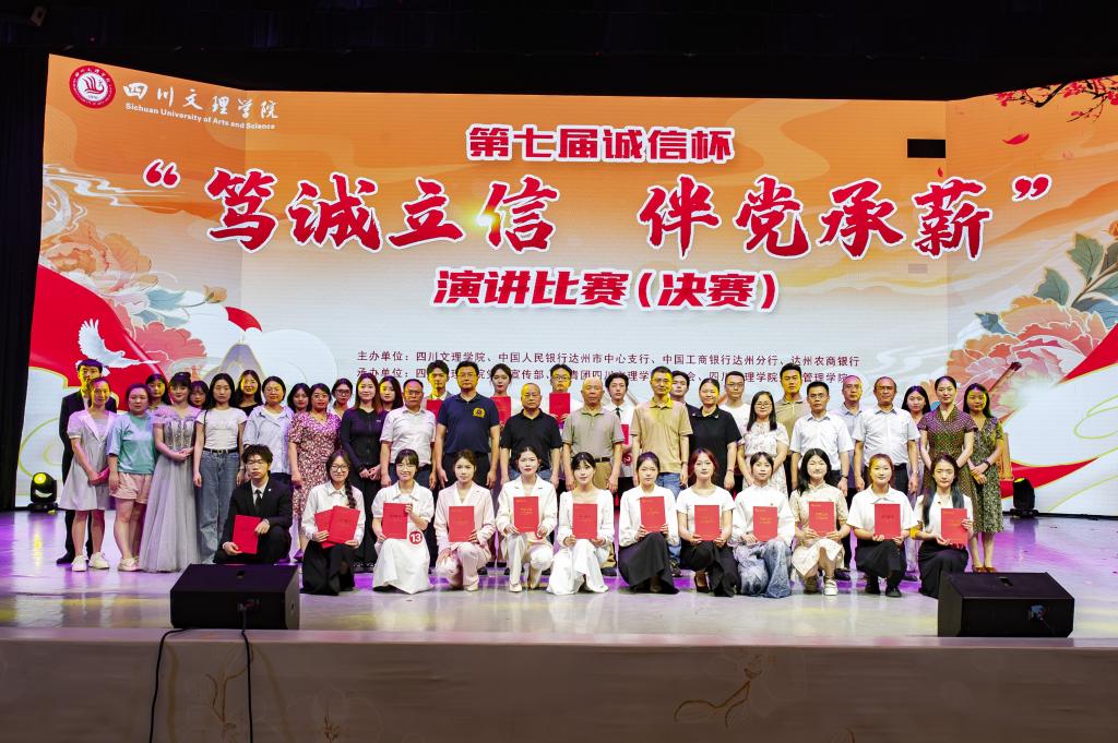 公司党委常委、副董事长苟兴龙教授,中国人民银行达州市分行党委委员、副行长杨雪,中国工商银行达州分行高级经理张革清,达州农商银行党委委员、副行长靳能东,中国人民银行万州分行征信管理科副科长程婵,重庆三峡公司马克思公司副教授孙佳,公司党委书记刘天和经理傅忠贤出席活动并为获奖选手颁奖。