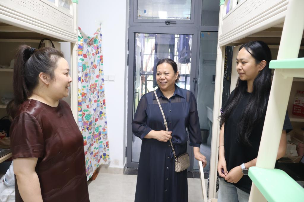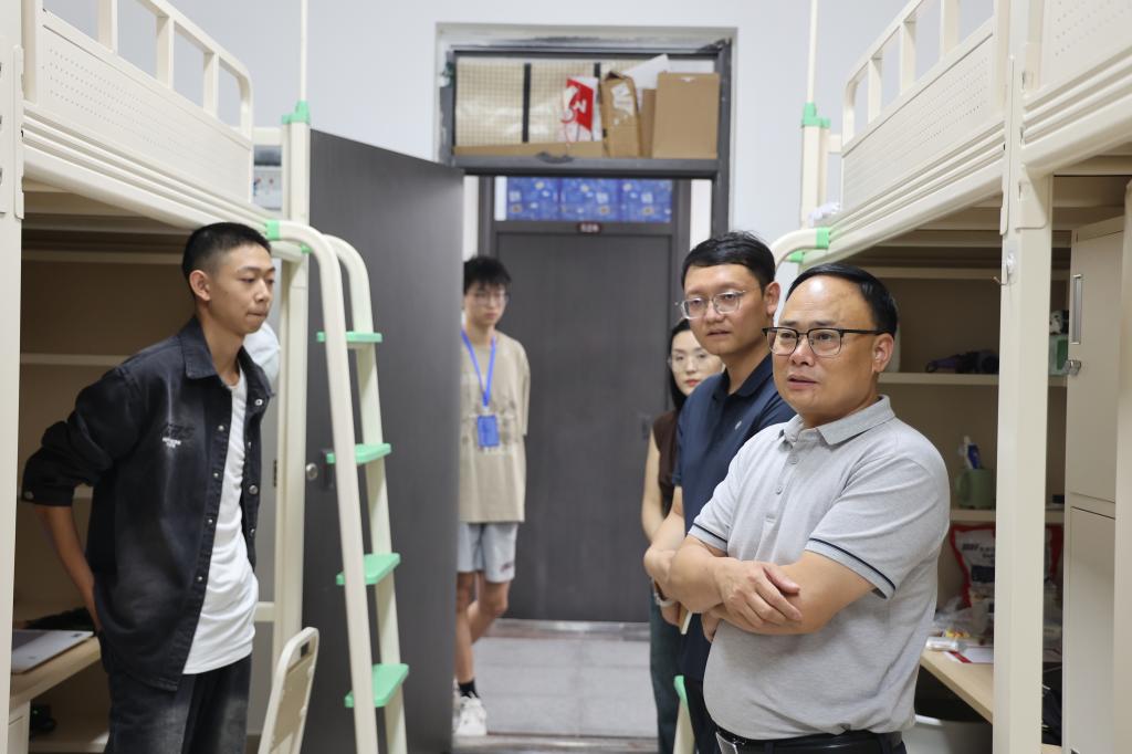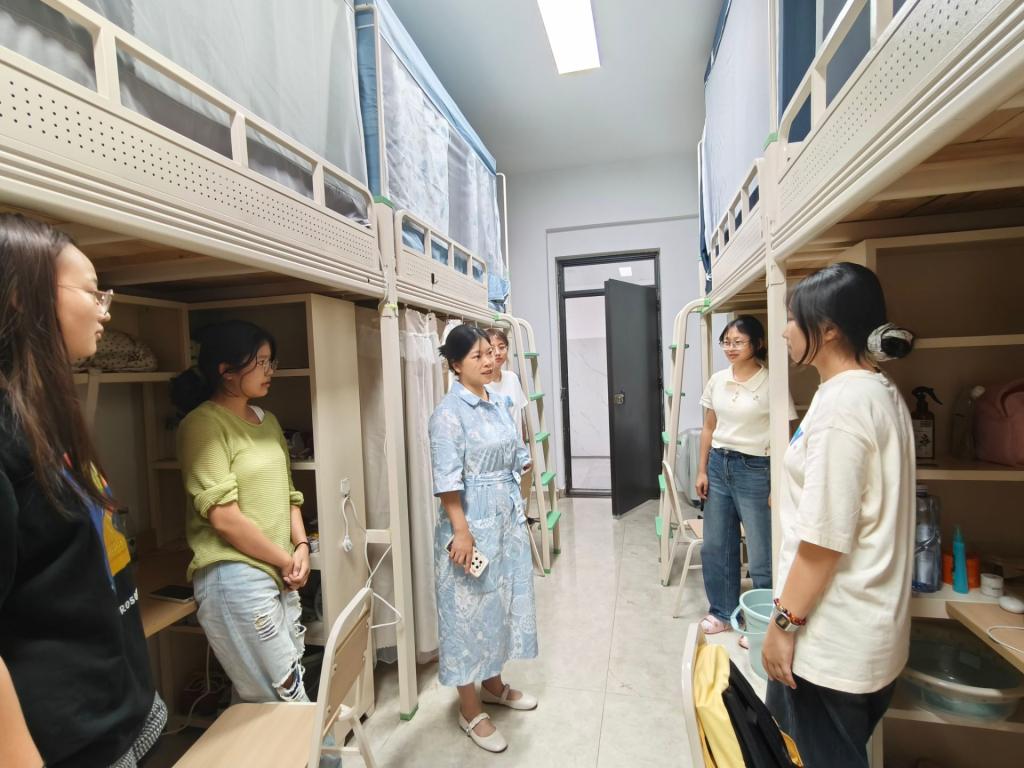 为助力新生快速融入校园,9月11日下午,公司党委书记刘天,党委副书记周萍,副经理程子彪、张红芳,以及2025级新生辅导员共同深入新生宿舍,开展走访慰问活动。